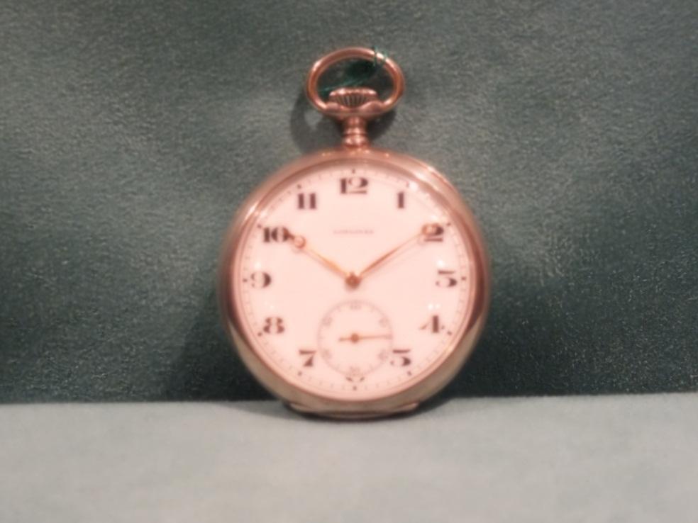 Lancette ore- minuti dorate. Movimento firmato e numerato Longines.